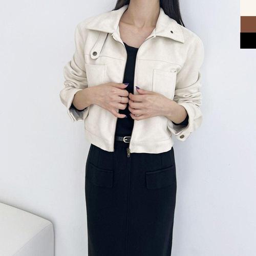 스웨이드 여성 심플 크롭자켓 WFK8I1U
