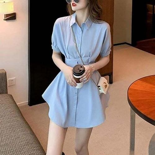 [셀럽하우스]숏팬츠 TRQB6283 포함 허리스트링 반팔 페미닌 셔츠원피스 직장