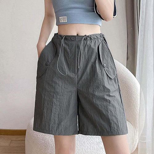 구디프 여성용 하이웨이스트 밴딩 스트링 와이드 루즈핏 5부 반바지