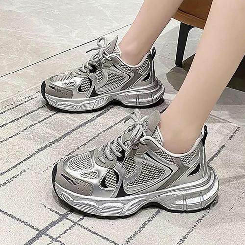 [라일리] Rly 여성 메탈릭 스니커즈 메쉬 어글리슈즈 통굽 운동
