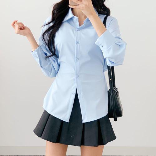 [옷자락]여자 허리라인 핏조절 사이드버튼 긴팔 셔츠