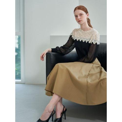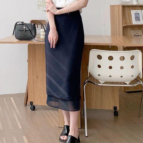 [옷자락] 여자 하객룩 H라인 시스루 레이어드 뒤트임 롱스커트