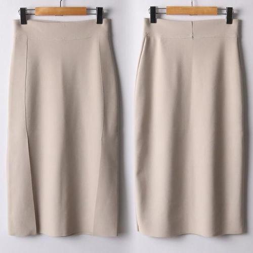 [하프클럽/삐까삐까]하이웨스트 H라인 미디 스커트 슬림 스판 롱 치마 오피스룩 정장 하객룩
