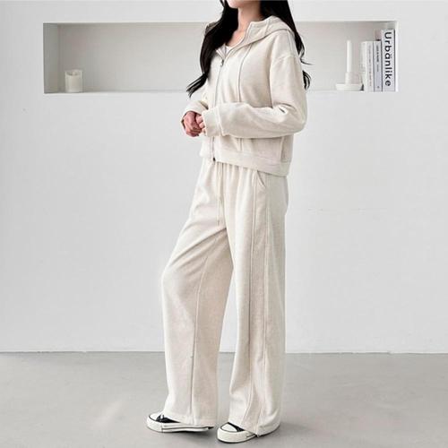 [옷자락] 여성 일상용 루즈핏 크롭 후드 집업 와이드 트레이닝 세트