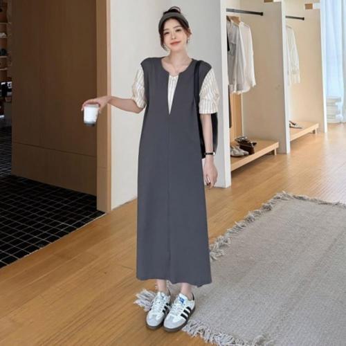 [옷자락]여자 봄가을 사계절 레이어드 브이넥 원피스