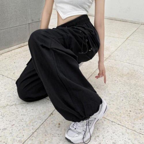 여성용 와이드핏 카고 바지 허리밴딩 팬츠 아웃도어 일상복 WFLLQ2Y