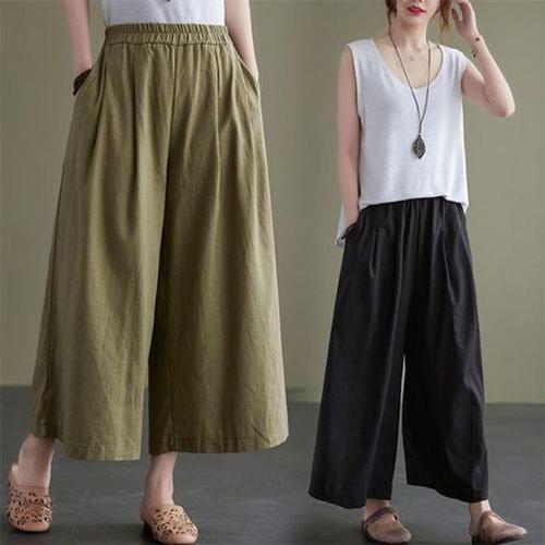 [오너클랜]인기상품 여성 린넨 허리밴딩 와이드 9부 여름 팬츠 슬랙스 바지 [WFLLSFV_260305]