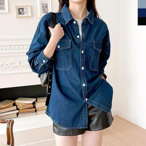 [리빌모아]여자 오버핏 청남방 포켓 데님 셔츠 DJW-SHA-S2LSINWSF5002