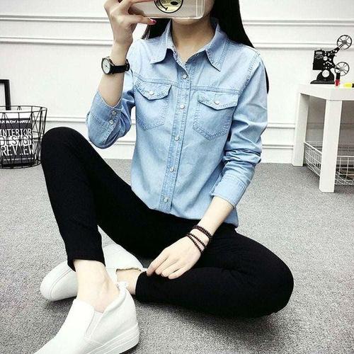 가비진 여성용 베이직 긴소매 데님 셔츠 기본 무지 청남방 긴팔 남방 셔츠