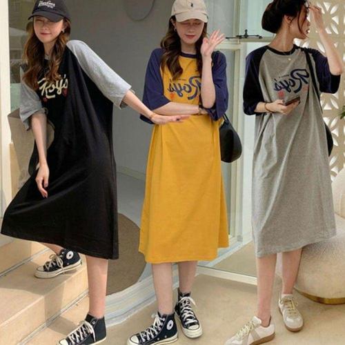 여성용 배색 루즈핏 롱원피스 데일리 캐주얼 면소재 여름 나그랑 WFLLPZY