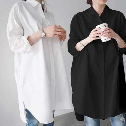 [굿쇼핑몰_의류]여유로운핏 2컬러 여성 베이직 롱셔츠 긴팔셔츠