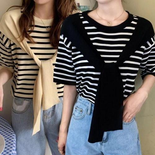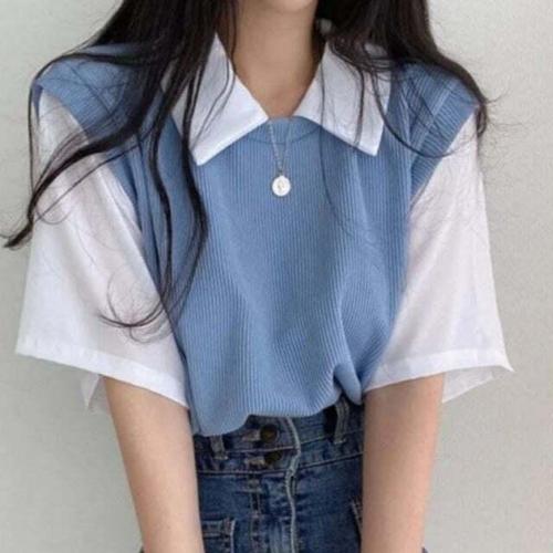 [오너클랜]인기상품 걸인조 뜨개탑 숏슬리브 와이셔츠 여성용 와이드핏 숏슬리브 캐주얼 [WFLEMCM_260415]