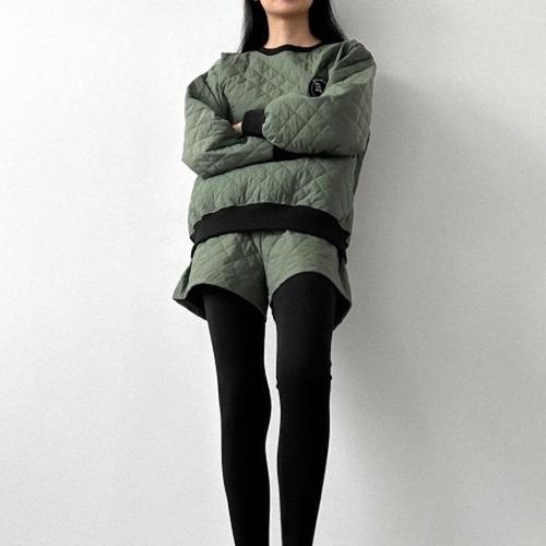 [신상오픈런]|KSD21C3|여자 퀄팅 패딩 긴팔 맨투맨 반바지 세트_19024956_597559