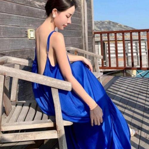 여름용 비치 끈 원피스 휴가 바캉스 롱 드레스 WFLLO9K