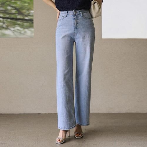 [옷자락]여자 데일리 편안한 연청 와이드 일자 청바지