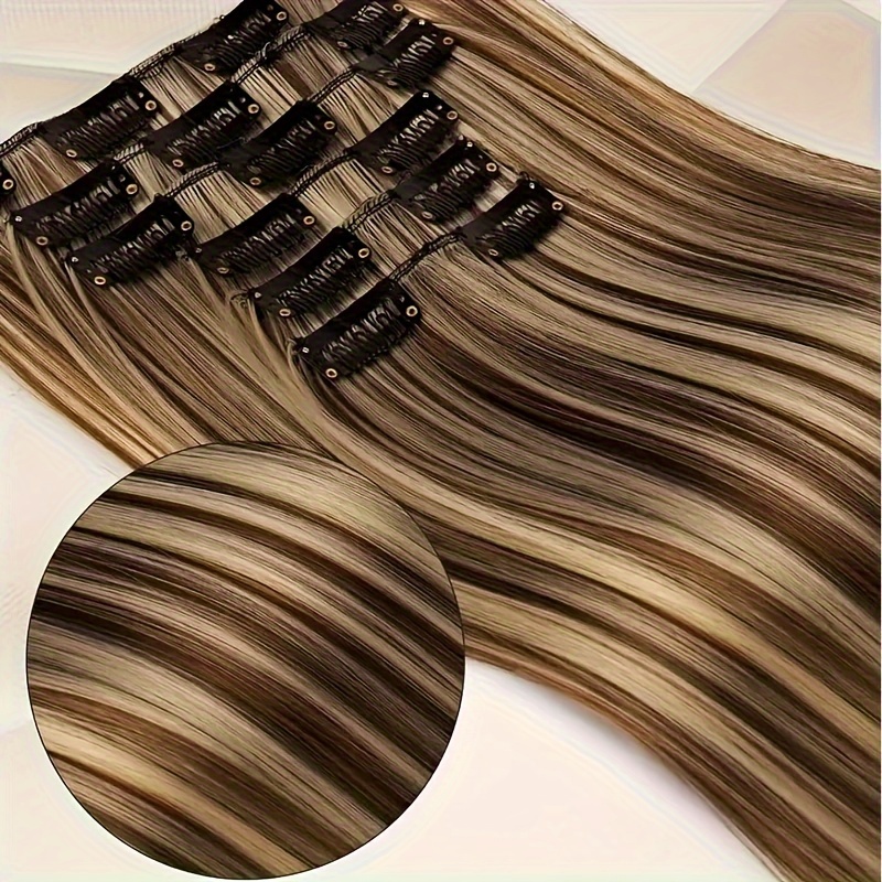 TEMU 24인치 헤어 익스텐션 6개 세트, 긴 혼합 색상 합성 헤어, 할로윈 볼륨 추가에 적합