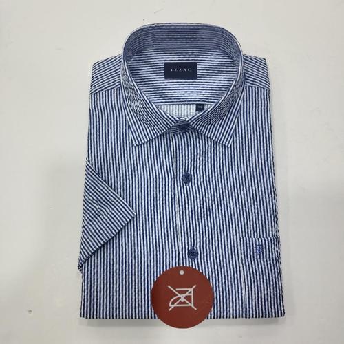 [예작]노아이롱 구김없는 시어서커 캐주얼 남방 여름반팔 일반핏 밑단일자 스트라이프 블루_SC