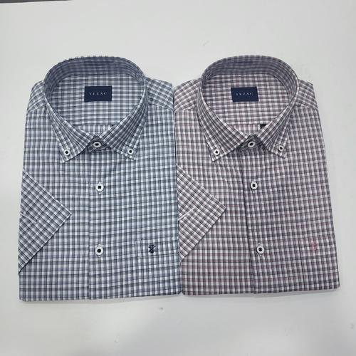 [예작]면혼방 캐주얼 체크 남방 반팔 일반핏(루미) 노타이굿 밑단일자 스냅버튼 A2860_SC