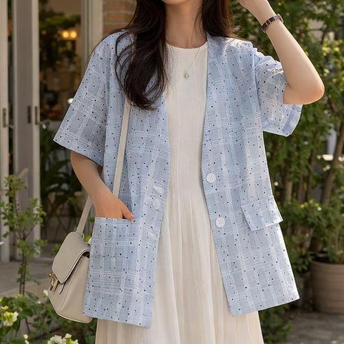 여름 레이스 가디건 루즈핏 코트 여성 반팔 자켓