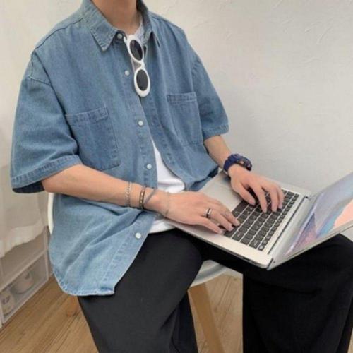 [오너클랜]인기상품 남성용 오버핏 데님 반팔 셔츠 캐주얼 남자 청자켓 여름용 [WFLMBEW_260419]