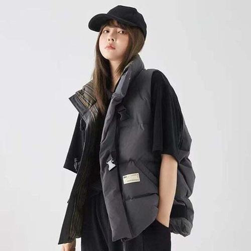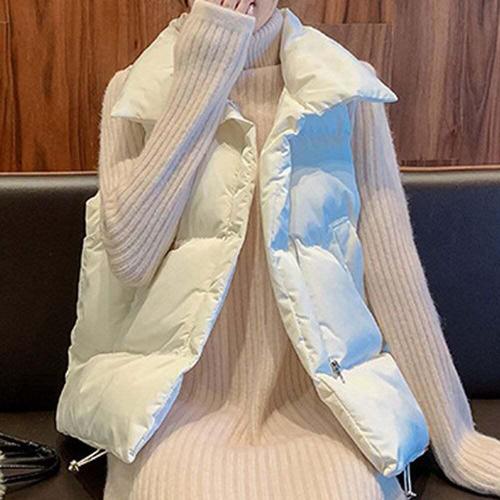 귀여운 여성 스타일 하이넥 오버핏 패딩 조끼 베스트