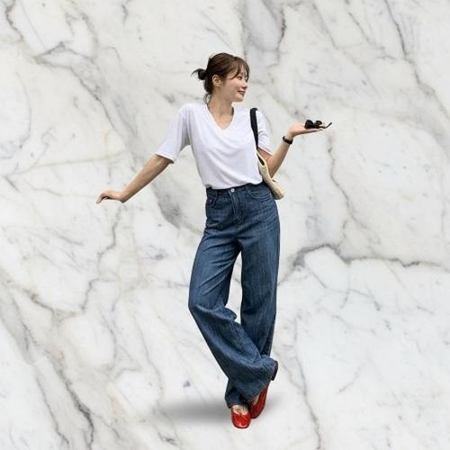 남성 지금딱 브이넥 반팔티 여름 아이스 얇은 화이트 이너 빅사이즈 루즈핏 5부 OOTD2