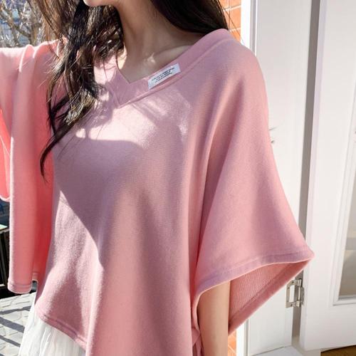 [핑크엘리제]컷팅소매 브이넥 루즈핏 반소매 플로리티니트