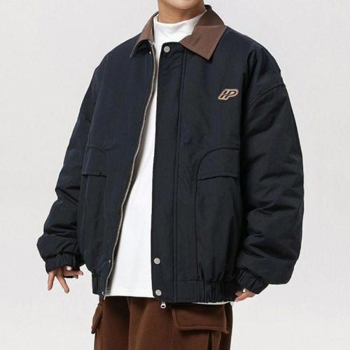 [더블디] 남성 데일리 레터링 오버핏 패치 야구점퍼 IS-JK54