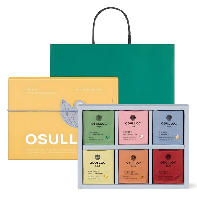 오설록 시그니처 3종 세트 60입 (제주 순수 녹차 + 제주 동백꽃 + 삼다 꿀배 티)