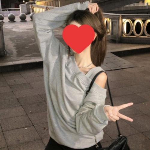 여리여리 여성 긴팔 오프숄더 맨투맨 언발 한쪽 루즈핏 어깨트임 WFKBXPI