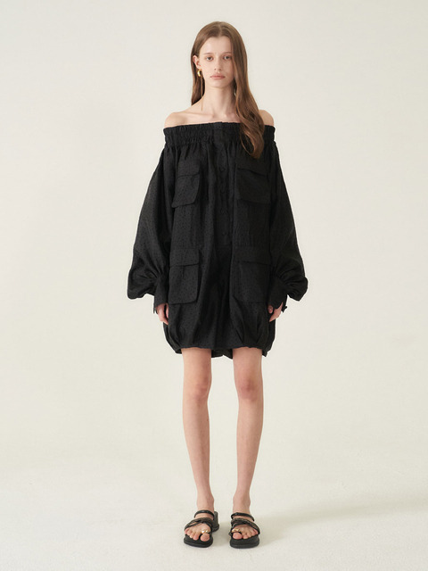 [까이에] 미니 도트 쉬폰 오프숄더 벌룬 점프수트