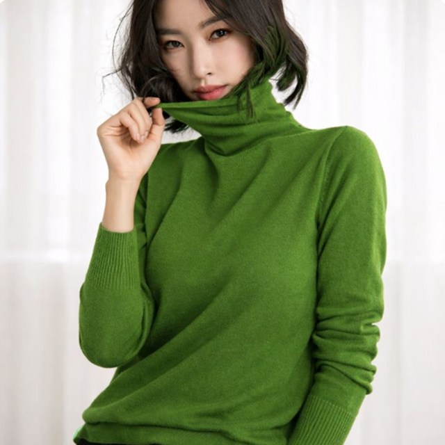 [옷자락][다잇템] 여자 가을출근룩 올리브그린 클래식 폴라 니트