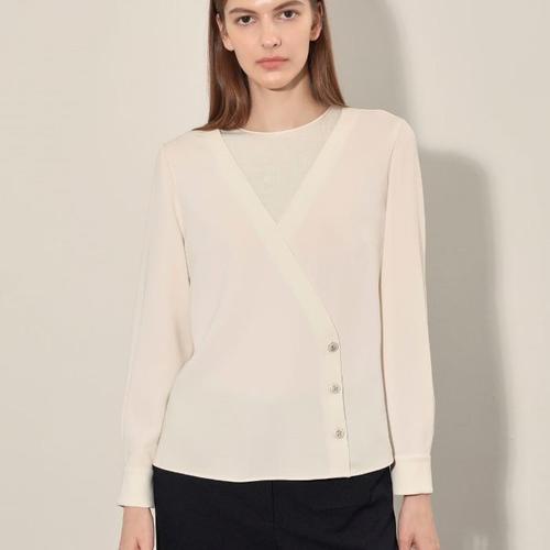 [올리비아로렌] 버튼 포인트 주름 블라우스_VOCNLYM3421
