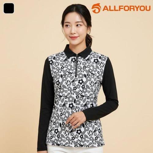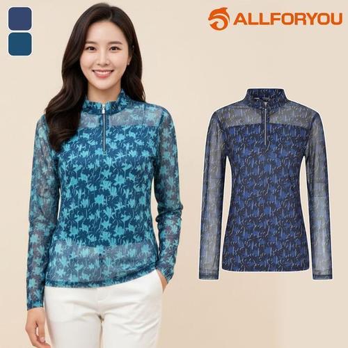 [올포유] [모델착장] 여성 올포유 프린트 냉감 소매 반집업 티셔츠 AWTPM2171-304