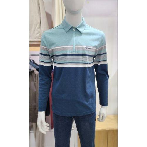 [올포유]남성-스트레치성 좋은 폴리스판 소재 스트라이프 반집업 긴팔 티셔츠-MTHO2161