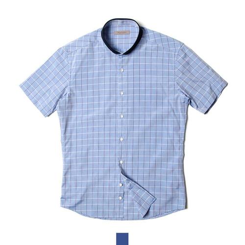 [오너클랜]인기상품 체크 와이드카라 네이비 반팔셔츠 [W19BB80_260309]