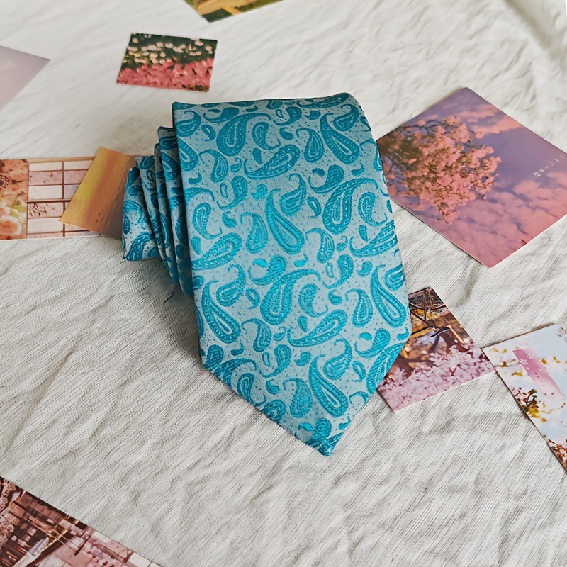 TEMU 신선한 라이트 레이크 블루 페이즐리 자카드 핸드타이 넥타이 - 봄/여름 출근, 경商务회의, 캐주얼 외출, 결혼식 신랑 들러리용. A Y 남성 넥타이 액세서리