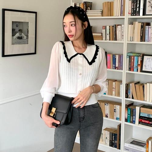 [옷자락]여자 라운드넥 세라 와플 단추 니트