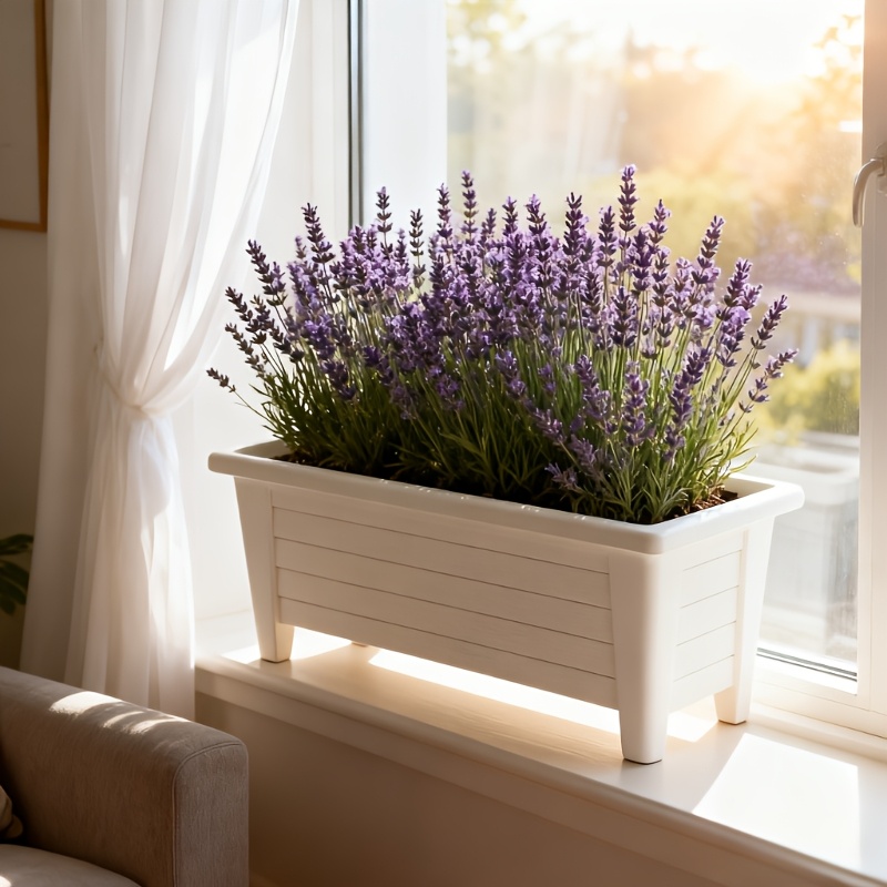 TEMU 1개 - 매우 두꺼운, 매우 큰 채소 재배 화분, 높은 다리 모조 나무결 채소 재배 화분, 직사각형 긴 재배 화분, 장식용 재배 상자 화분 - 화이트/브라운 듀얼 컬러 옵션