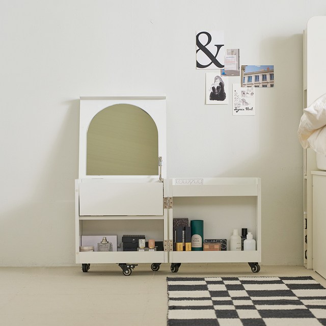 [우아미] 모노 던스 원룸 틈새 수납 거울 서랍형 화장대 400