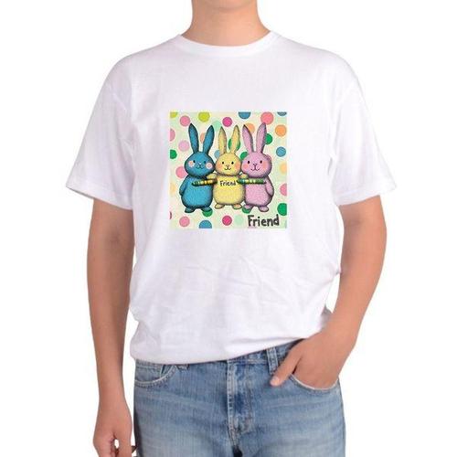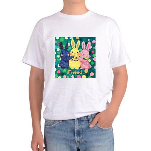 [에이치플러스몰]오버핏반팔티 전사이즈 세친구 토끼 우정 FRIEND