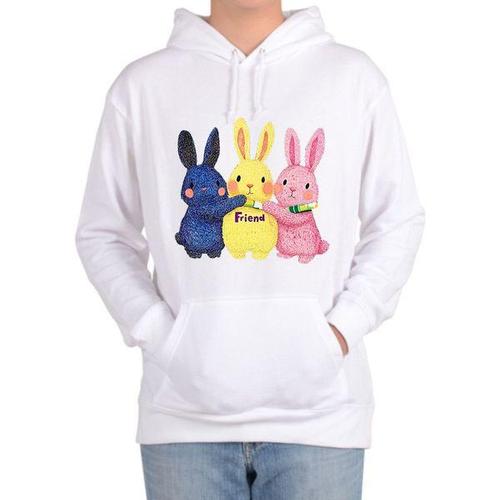[에이치플러스몰]기모후드티 전사이즈 세친구 토끼 우정 FRIEND