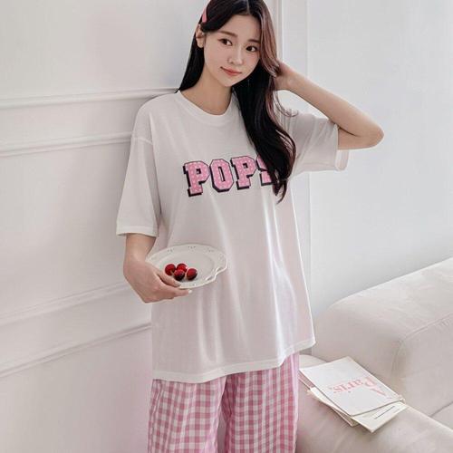 [다잇템]여자 우정룩 실내복 체크바지 박시반팔티 세트