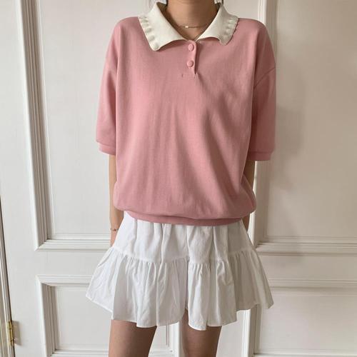 [다잇템]여자 면원단 프릴 콘트라스트 버튼 맨투맨