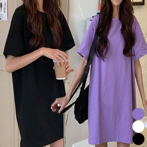 [셀럽하우스]여성 YMTR4516 무지 반팔티셔츠 롱티 박스티 숏원피스 3컬러
