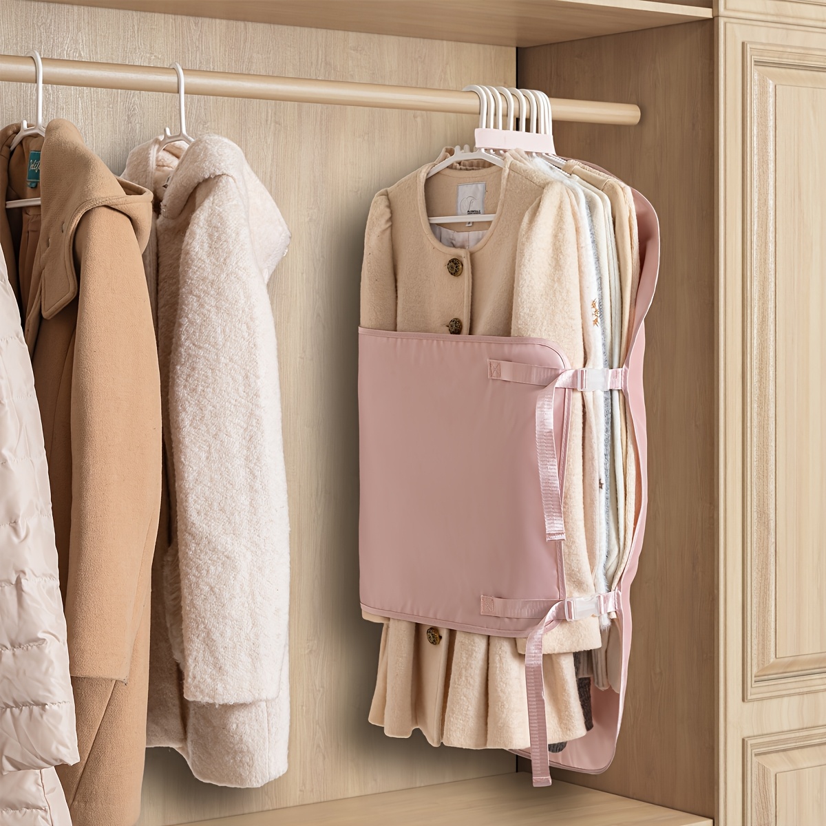 TEMU 의류 압축 보관 보드 - 접이식 의류 보호 커버와 수납 칸 커버가 포함된 옷장 걸이형 보관 가방으로, 다운 재킷, 정장, 웨딩 드레스 등을 보관할 수 있습니다. 후크 앤 루프 방식의 압축 걸이형 보관 가방, 의류 압축 보관 보호 커버