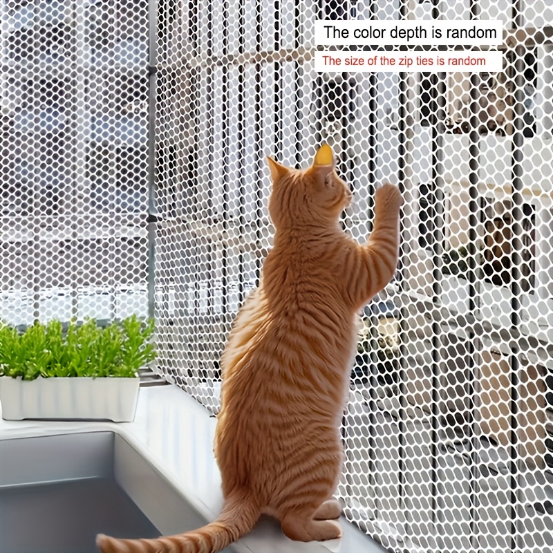 TEMU [발코니 고양이 안전망] - 끈 포함 - 고양이 탈출 방지, 자유로운 보호 메시 울타리, 실내/실외 사용을 위한 암호화된 탈출 방지망, 발코니 안전망| 안전한 울타리 디자인| 폴리에틸렌 네트| 고양이 추가 깊이 랜덤 색상