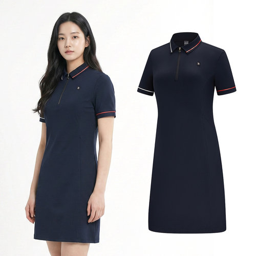 [김영주골프]여름 쿨링 스판 배색 카라넥 여성 골프 원피스 DQMLOP38