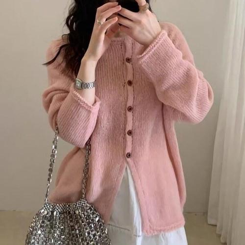 TEMU 가을/겨울용 여성용 풀오버 스웨터, 안감이나 아우터로 착용 가능, 편안하고 따뜻하며 독특한 디자인으로 우아함. 스플라이스드 라펠 칼라와 정교한 메탈 단추가 특징. 기계 세탁 및 드라이클리닝 가능