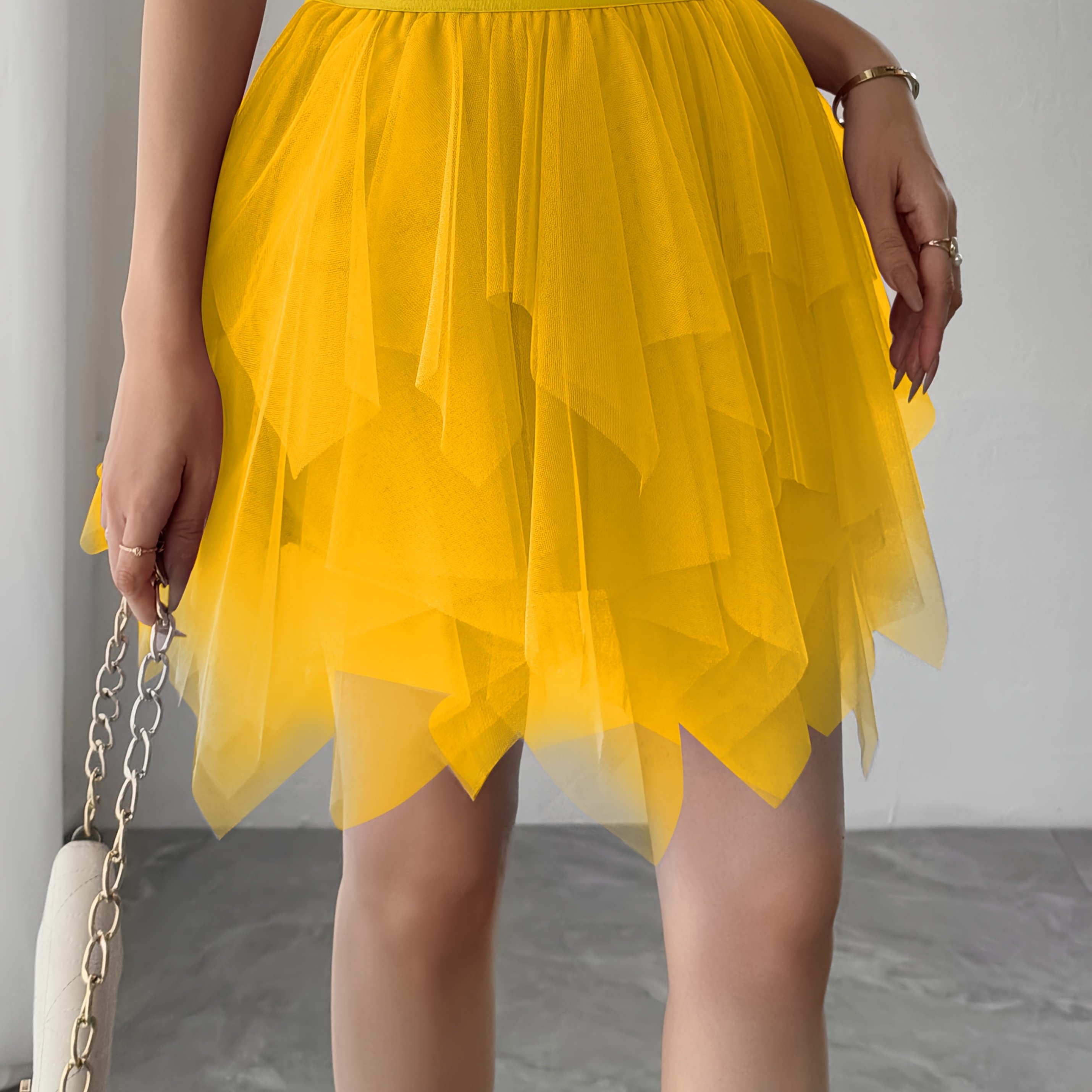 TEMU 솔리드 컬러 숏 메쉬 비정형 스커트